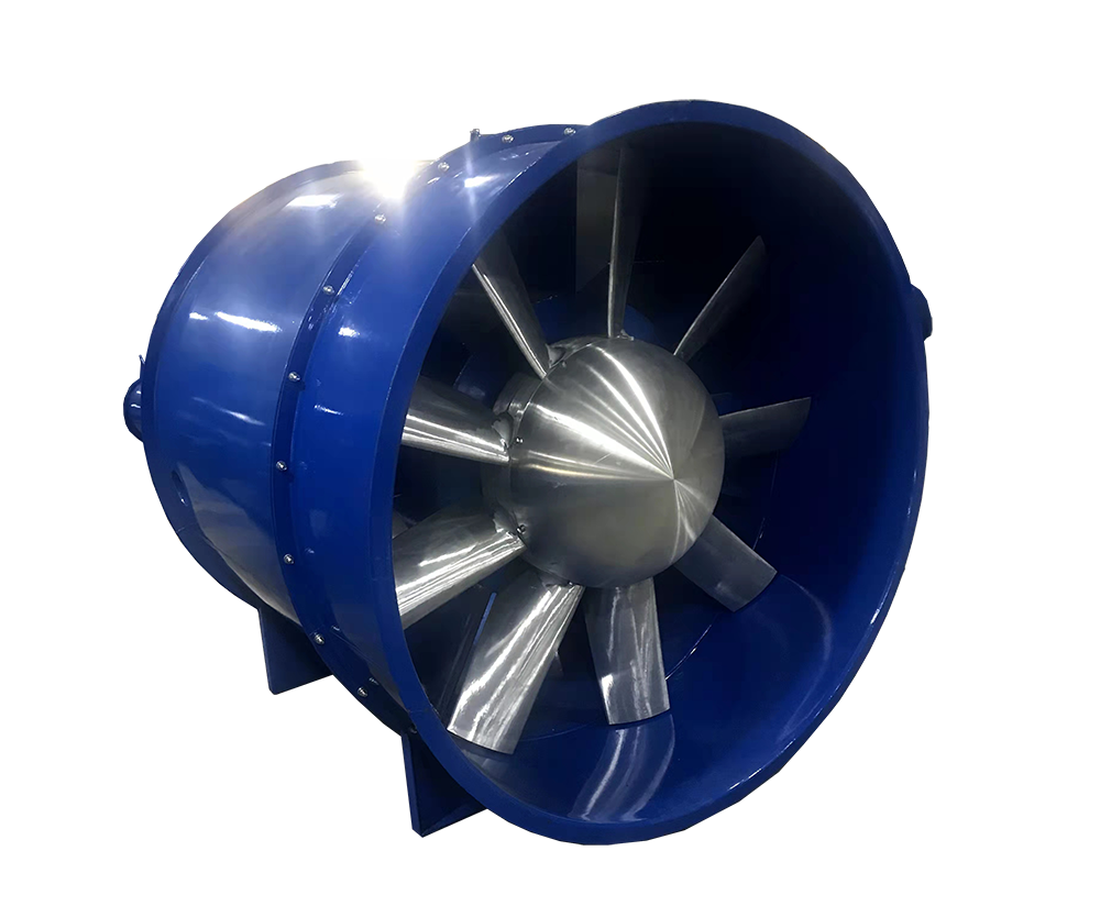 高溫排煙消防風(fēng)機(jī)主要由電機(jī)、風(fēng)葉、機(jī)殼、取風(fēng)口和出風(fēng)口等組成。電機(jī)為三相異步電機(jī),具有較高轉(zhuǎn)矩和低噪音的特點(diǎn),可以長(zhǎng)時(shí)間穩(wěn)定運(yùn)轉(zhuǎn)。而風(fēng)葉是消防風(fēng)機(jī)的核心部件,一般采用多翼或單翼葉片,由于高速旋轉(zhuǎn)會(huì)產(chǎn)生較大的噪音,因此一般需要進(jìn)行靜、動(dòng)平衡處理。機(jī)殼為風(fēng)機(jī)的外殼,材料多為鍍鋅板或不銹鋼板,具有較高的防腐、抗腐蝕能力。取風(fēng)口和出風(fēng)口則是實(shí)現(xiàn)空氣流動(dòng)的管道,可以根據(jù)現(xiàn)場(chǎng)情況進(jìn)行定制。